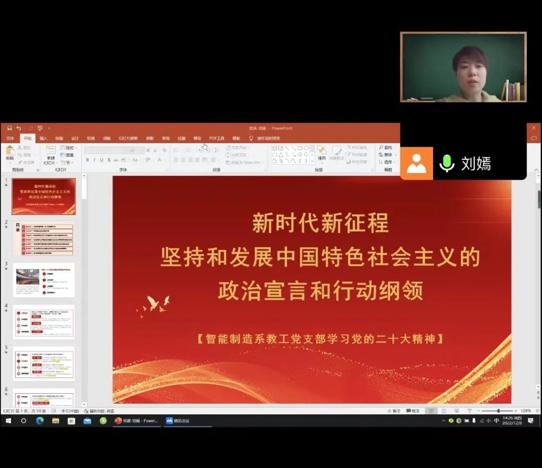 為深入學(xué)習(xí)宣傳貫徹黨的二十大精神,推動(dòng)黨的二十大精神在智能制造系落地落實(shí)。智能制造系教工黨支部通過支部集體學(xué)和個(gè)人主動(dòng)學(xué)的方式開展“黨的二十大精神我來講、我來學(xué)、我來考”專題活動(dòng)。因疫情防控要求,“我來講”活動(dòng)于線上開展。