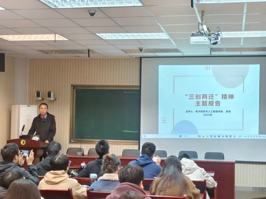 賈謀老師圍繞“三創(chuàng)兩遷”大學(xué)精神展開解讀,系統(tǒng)細(xì)致闡述我校“三創(chuàng)兩遷”的歷史淵源與內(nèi)在要義,助力學(xué)員深化認(rèn)知。課程伊始,他以學(xué)校67年發(fā)展演變與搬遷歷程為切入點,逐步解讀“三創(chuàng)兩遷”核心含義;隨后通過展示創(chuàng)業(yè)與搬遷時期的珍貴影像、歷史報紙等史料,直觀呈現(xiàn)老一輩科大人“西遷”時的堅定意志與擔(dān)當(dāng),深度詮釋“三創(chuàng)兩遷”精神內(nèi)涵;同時以學(xué)校名稱沿革為脈絡(luò),串聯(lián)不同時期創(chuàng)業(yè)實踐故事,進(jìn)一步引導(dǎo)積極分子理解感悟“西遷”背后“胸懷大局、無私奉獻(xiàn)、弘揚傳統(tǒng)、艱苦創(chuàng)業(yè)”的精神內(nèi)核與堅定信念;課程尾聲,賈謀老師立足當(dāng)下實際,將“三創(chuàng)兩遷”精神與新時代發(fā)展要求結(jié)合,引導(dǎo)積極分子傳承先輩精神血脈,把火熱青春融入新時代建設(shè)實踐。