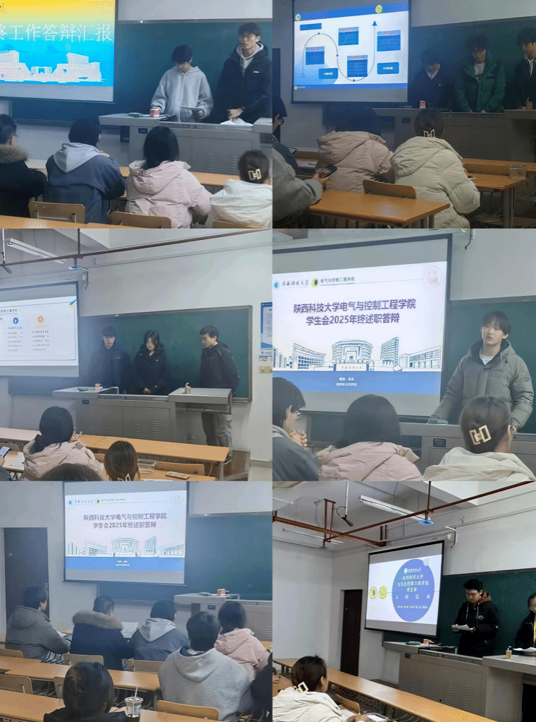 同時,12月29日晚間,電控學院學生會成功召開電氣與控制工程學院學生會2025年度述職答辯。本次會議在教4 B406教室進行,由電控學院學生會指導教師,學生會主席團成員與全體部門負責人共同參與。