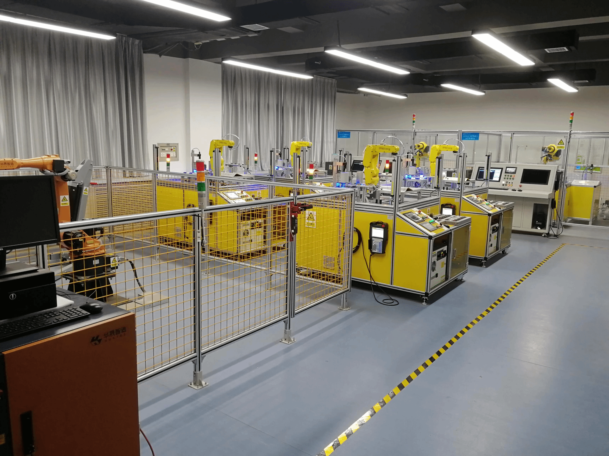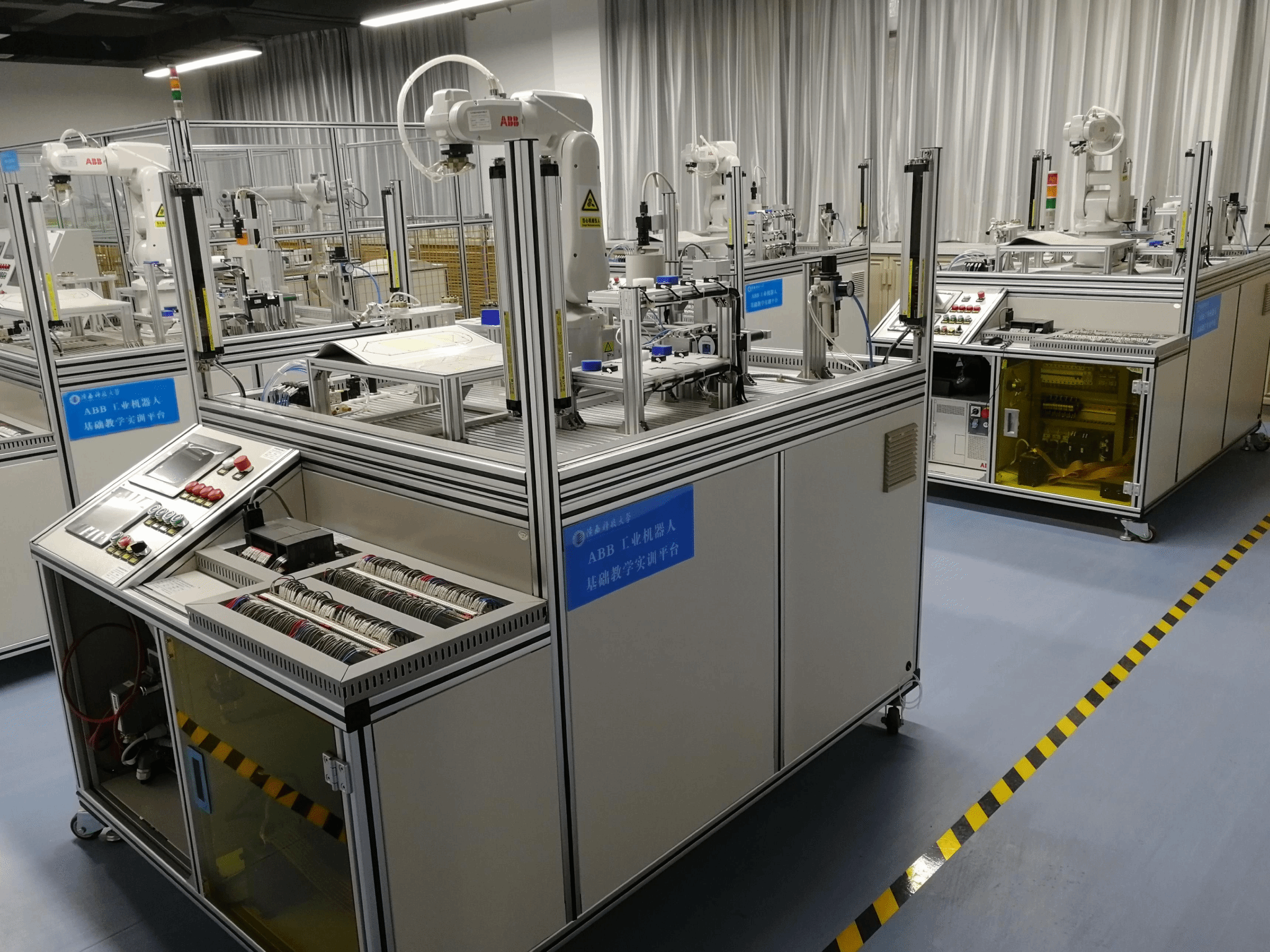 創(chuàng)新基地總面積約300平方米;擁有儀器設(shè)備84臺/套,設(shè)備固定資產(chǎn)約400萬元,主要包括完成工業(yè)機(jī)器人基礎(chǔ)教學(xué)實(shí)訓(xùn)和綜合實(shí)訓(xùn)的ABB、FANUC工業(yè)機(jī)器人平臺;為學(xué)習(xí)者提供虛擬學(xué)習(xí)工業(yè)機(jī)器人基礎(chǔ)知識、操作與編程的工業(yè)機(jī)器人虛擬仿真實(shí)訓(xùn)平臺三大部分。