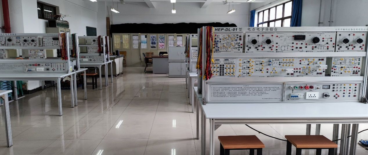 實(shí)驗(yàn)室面積120平方米,配備電力電子實(shí)驗(yàn)臺18套,價(jià)值約55萬元。承擔(dān)本院電氣、自動(dòng)化專業(yè)學(xué)生《電力電子技術(shù)》課程的實(shí)驗(yàn)教學(xué)任務(wù)。 《電力電子技術(shù)》是電氣、自動(dòng)化等專業(yè)的專業(yè)基礎(chǔ)課,課程圍繞發(fā)電、變電、配電和用電過程中的電力電子技術(shù)問題,主要研究電力電子變換技術(shù),著重培養(yǎng)學(xué)生掌握電力電子變換的基本方法,培養(yǎng)抽象分析問題能力和系統(tǒng)工程概念。針對該課程,可開設(shè)單相全控橋式整流電路、三相全控橋式整流電路、隔離全橋直流變換電路、單相交流調(diào)壓電路等實(shí)驗(yàn)項(xiàng)目。